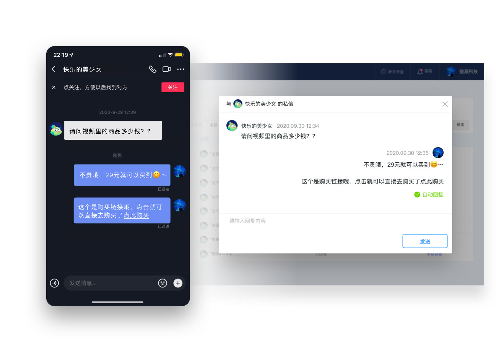 个性化的私信自动回复,支持多关键字匹配,语料泛化匹配,回复逐条分离发送